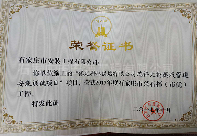 2017年度石家莊市興石杯(市優)工程